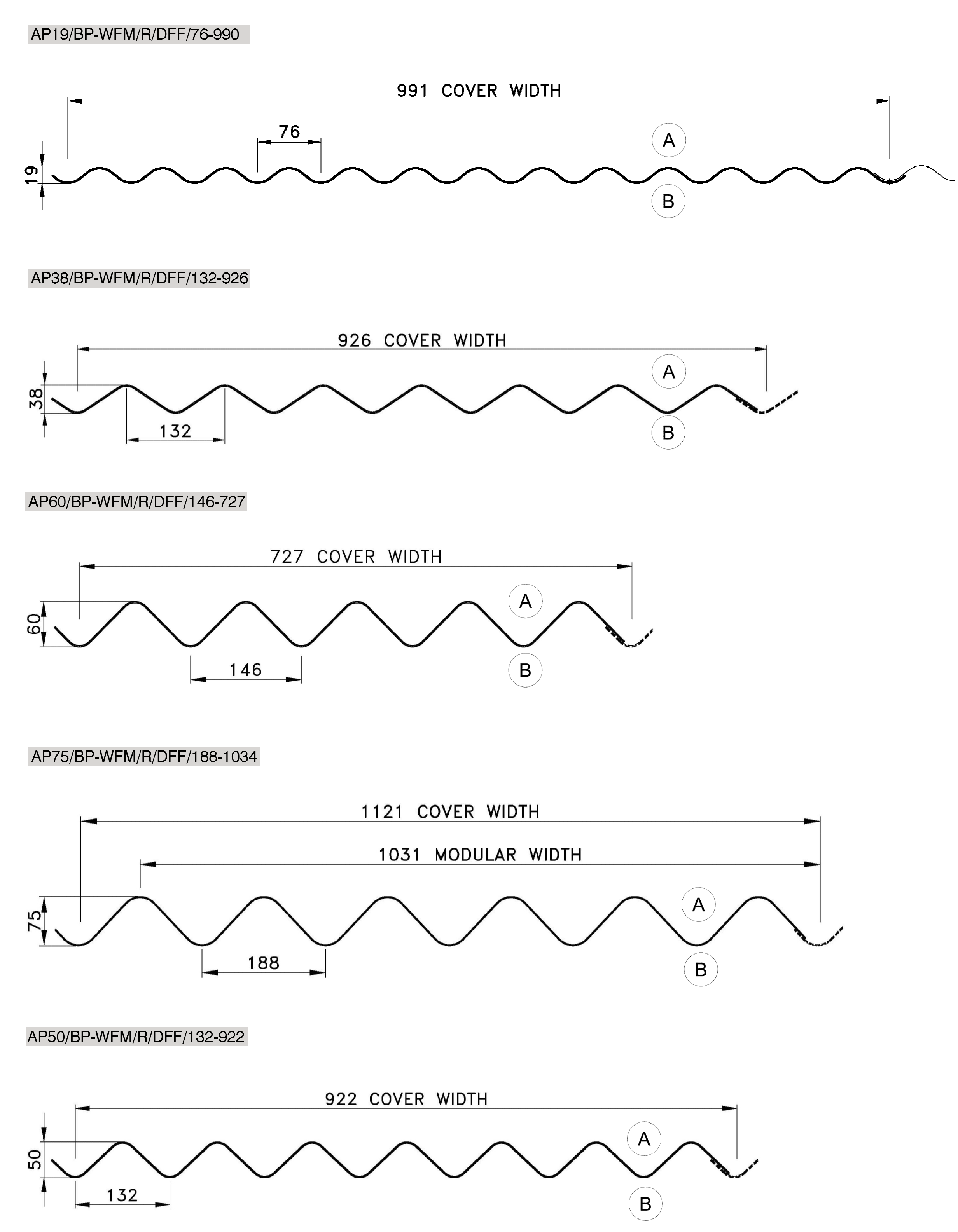Custom Bespoke profiles come in six ranges (see drawings below for details):